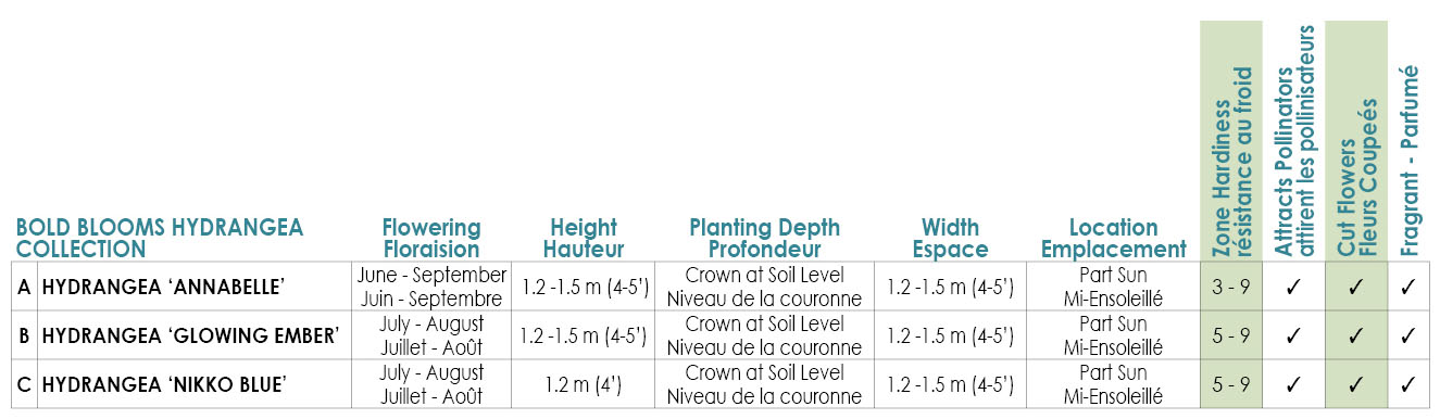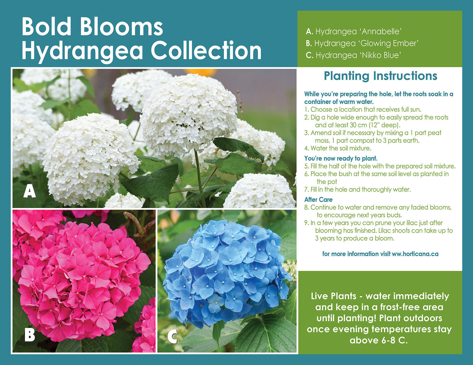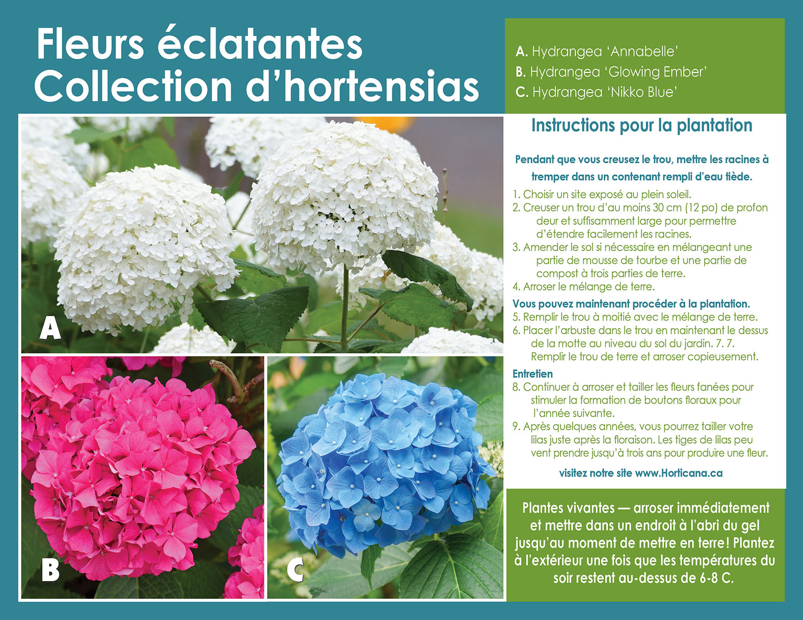 Ces variétés sont expédiées sous forme de plantes en pleine croissance dans des pots de 10,2 cm (4 po). Ces jeunes plants ont déjà commencé à croitre. Ils peuvent être plantés dans de grands pots et dans des platebandes. Les plants devraient être entreposés à l’abri du gel jusqu’à ce que le sol soit facile à travailler et prêt pour la plantation. Comme il s’agit de plantes en pleine croissance, vous devrez les arroser jusqu’à ce que vous soyez prêt à les mettre en terre. L’expédition dépendra des conditions météorologiques.